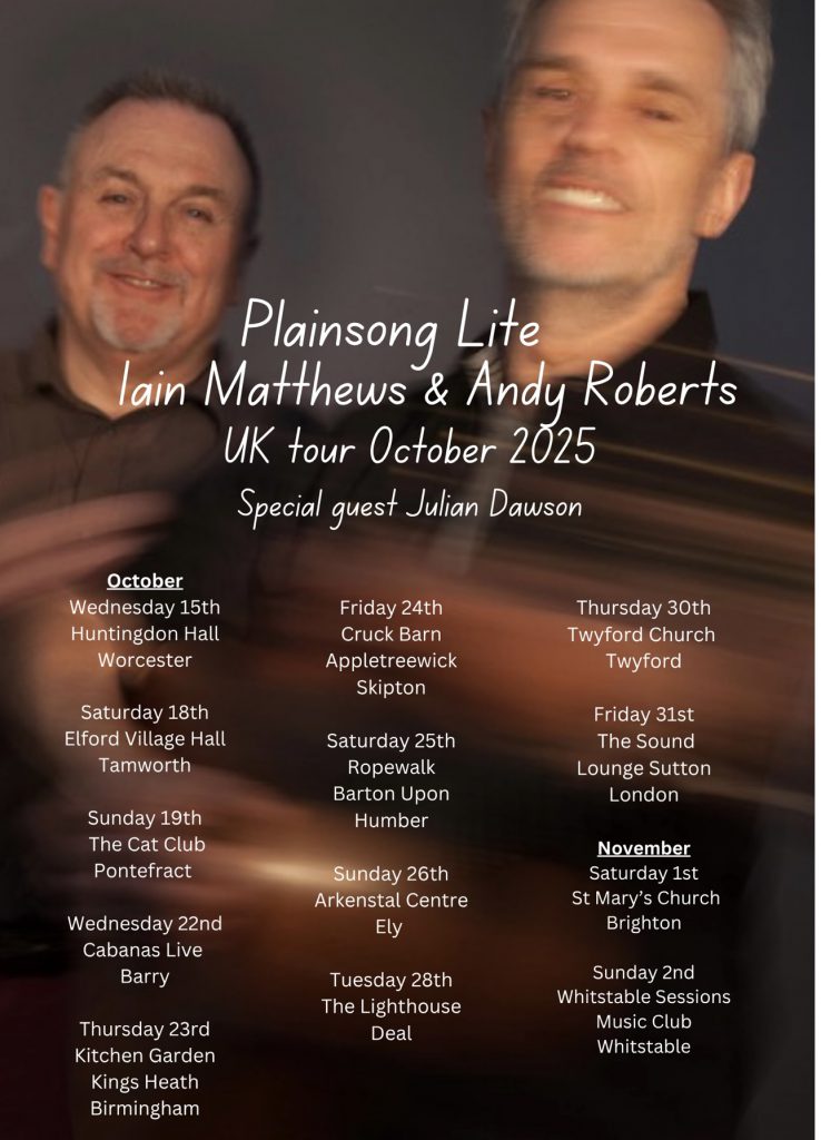 Posted on 3 May 202517 October 2025 by WebmasteronePLAINSONG LITE IAIN MATTHEWS & ANDY ROBERTS UK TOUR 2025